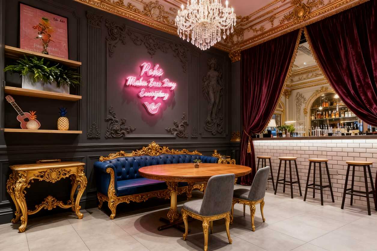 偷偷告訴你們幾個(gè)神仙機(jī)位:紅墻霓虹燈前拍剪影絕了,彩色墻繪當(dāng)背景超級(jí)出片,吧臺(tái)那個(gè)透明玻璃區(qū)也很有故事感。晚上來拍照效果更棒,燈光一打,隨手一拍都是高級(jí)感大片!