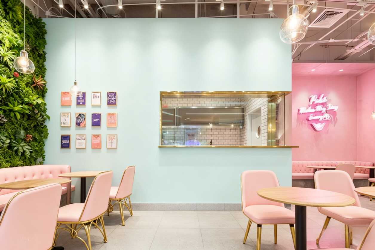 輕奢風混搭藝術感!這家餐廳的裝修軟裝設計太絕了,水晶燈配霓虹墻美出天際