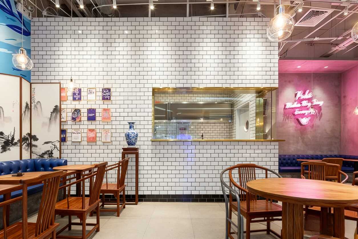 寶子們!今天刷到這家餐廳的效果圖,我真的被驚艷到了!白色瓷磚吧臺配上金色線條,水晶吊燈一掛,輕奢感直接拉滿。***絕的是那個玫紅色背景墻,加上霓虹燈的裝飾,氛圍感拿捏得死死的!