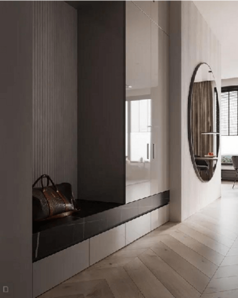 玄關(guān)處的裝修要集美觀度與實(shí)用度為一體,鞋柜做到頂設(shè)計(jì),***大程度地滿足鞋子收納需求,鞋柜底部留空,方便日常換鞋取鞋,玄關(guān)處采光度較弱,在鞋柜底部和留空處設(shè)計(jì)好燈帶,增加玄關(guān)處的采光照明。
